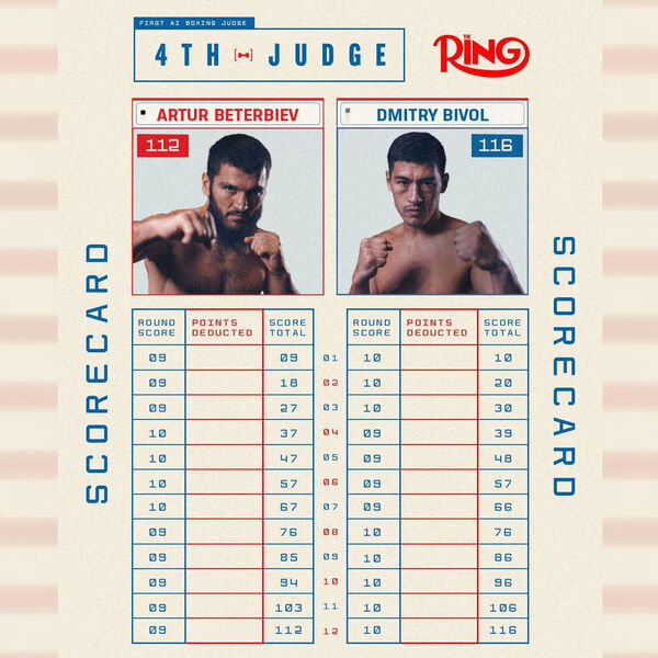 По мнению ИИ, Бивол выиграл поединок со счетом 116-112.