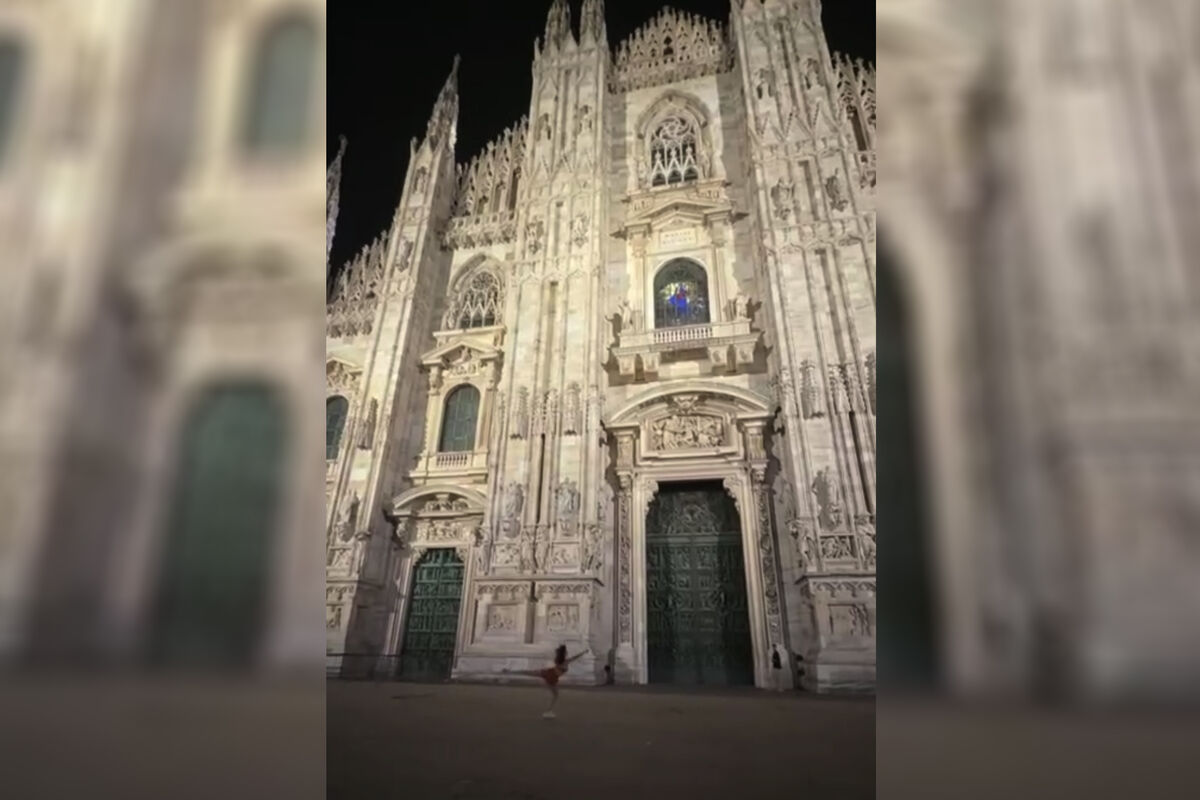 Российская фигуристка Камила Валиева в своем Telegram-канале выложила видео, на котором исполняет двойной аксель на площади перед Миланским собором во время своего отпуска в Италии.