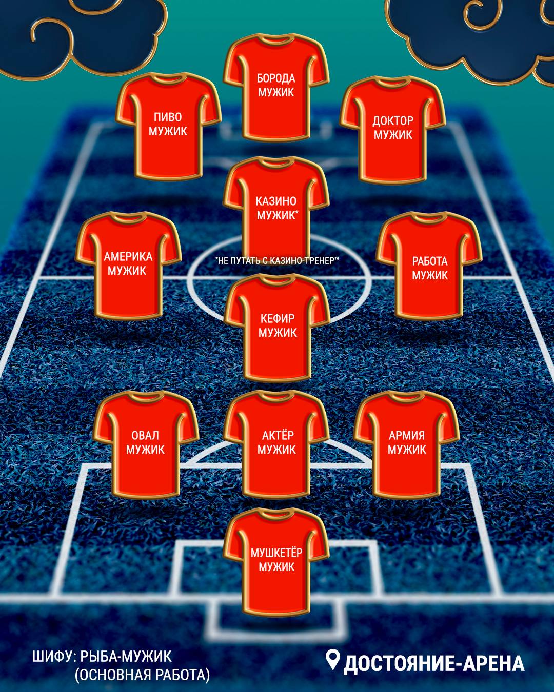 Пресс-служба опубликовала картинку, где фамилии футболистов были заменены. К примеру, были указаны следующие варианты «пиво мужик», «Америка мужик», «кефир мужик».
