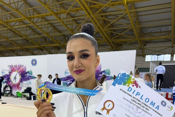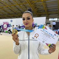 В соревнованиях среди взрослых гимнасток Арина Ткачук победила в упражнении с лентой.