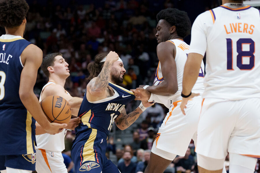 Во время атаки «Финикса» в третьей четверти 183-сантиметровый защитник «Пеликанс» Хосе Альварадо оттолкнул от себя 216-сантиметрового центрового «Санз» Марка Уильямса. Арбитры указали на то, что подобное поведение является фолом, однако эта трактовка эпизода не понравилась Альварадо. Он намеревался подойти к судье, чтобы обсудить это, однако в этот момент Уильямс толкнул соперника в спину.