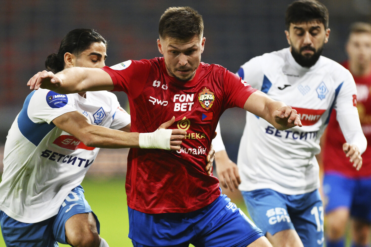 После нескольких подходов динамовцев позиционную атаку устроил ЦСКА. В итоге Глебов нарвался на фол на фланге. Точка для подачи.