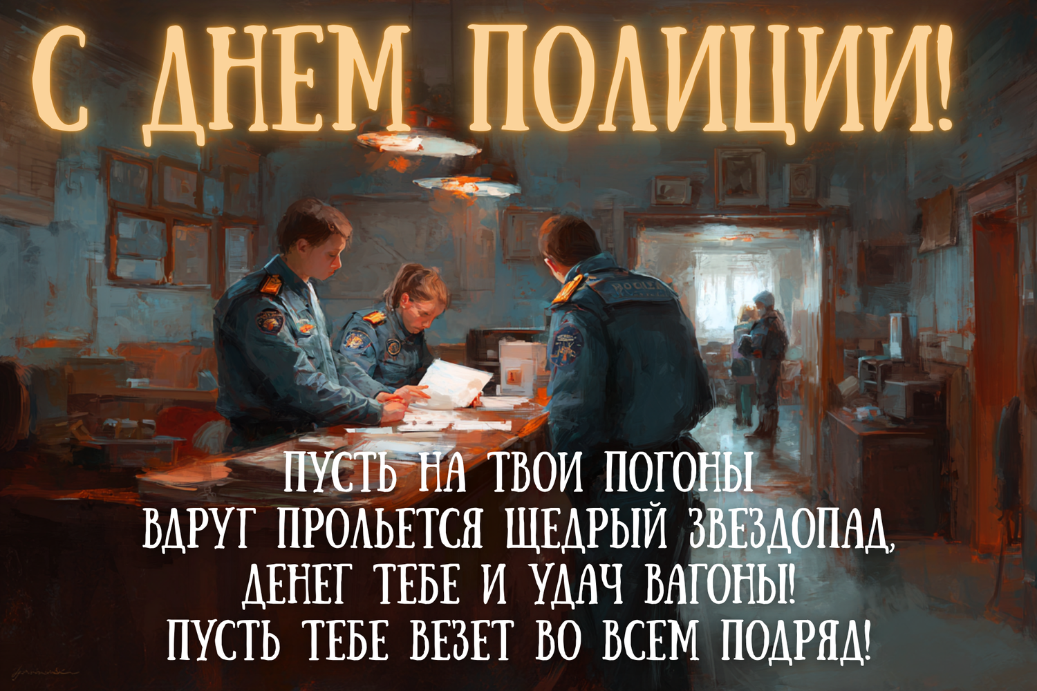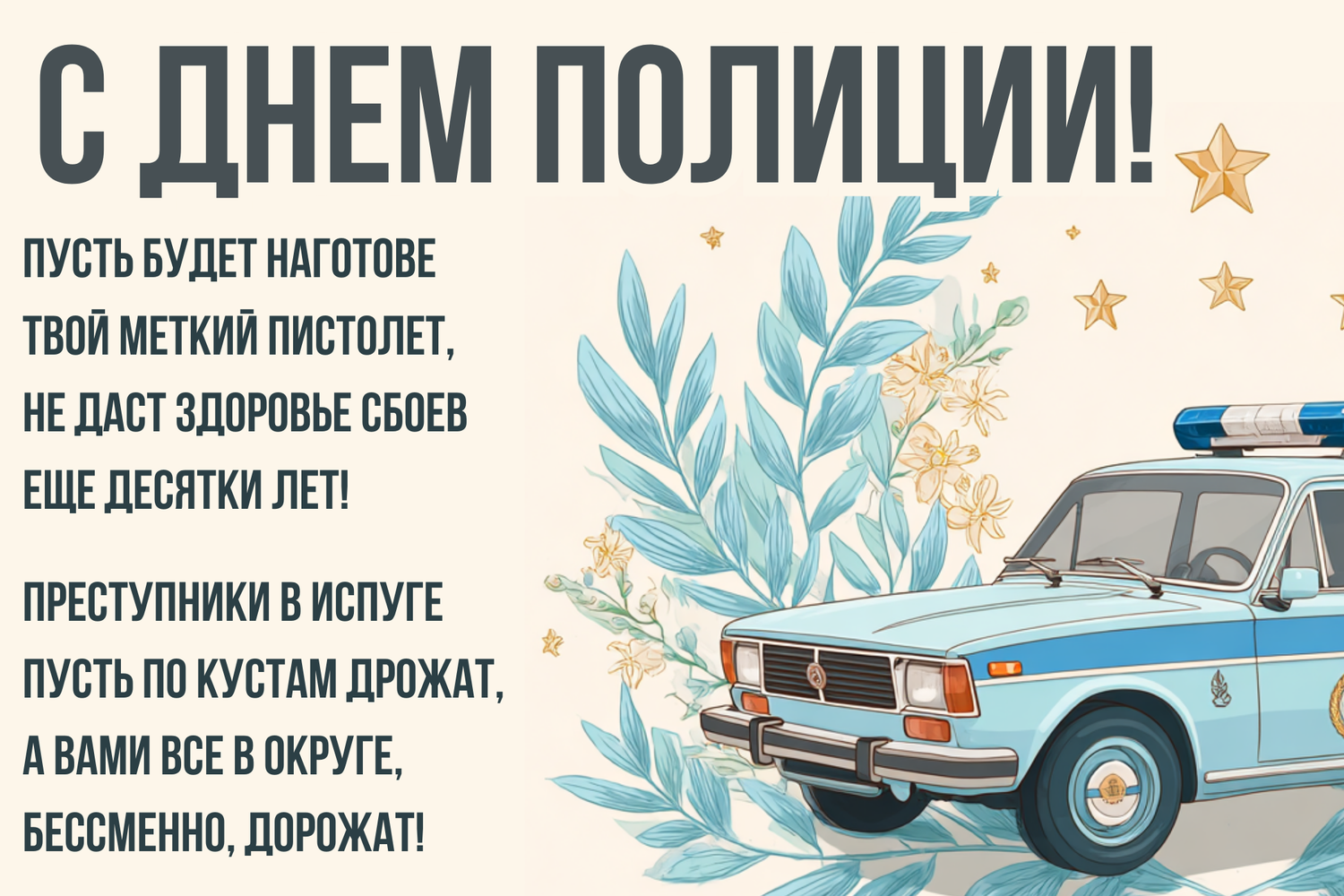 • С Днем сотрудника органов внутренних дел! Пусть служба будет спокойной, а дом — теплым и надежным тылом.