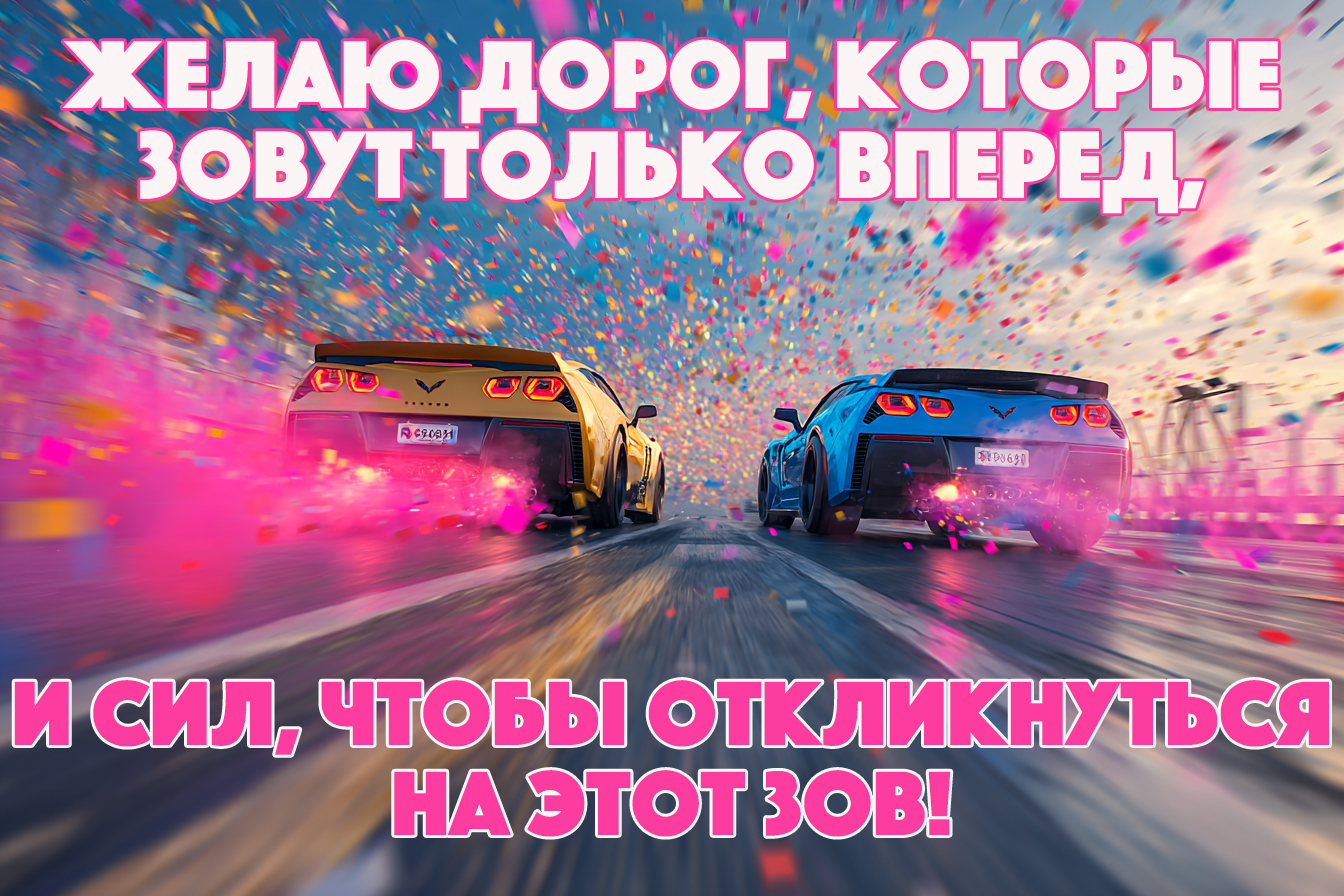- С днем рождения, друг! Пусть твой внутренний двигатель никогда не стучит, а топливо не заканчивается! Энергии тебе, новых скоростей и горизонтов!
