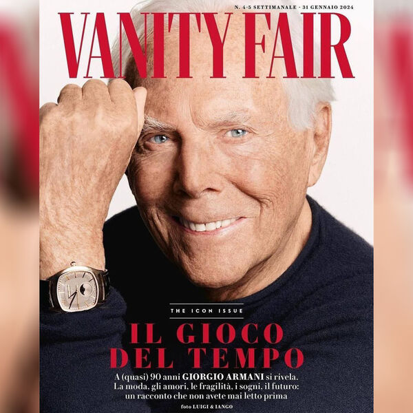 Журнал Vanity Fair опубликовал специальный выпуск Icon Issue, посвященный великим иконам современной культуры, и взял интервью у модельера Джорджо Армани. Летом 2024 года ему исполнится 90 лет. На обложке Джорджо Армани позировал в синем джемпере и часах с кожаным коричневом ремешком. Перед камерой дизайнер улыбался.