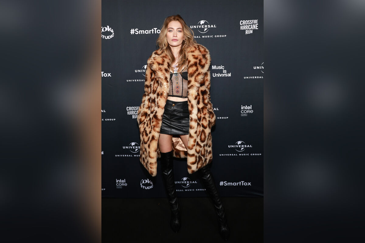25-летняя Пэрис Джексон вышла на публику в откровенном наряде. Дочь Майкла Джексона надела черный прозрачный корсет, кожаную мини-юбку и длинную леопардовую шубу. Она дополнила образ золотыми серьгами-кольцами, черной сумкой, кольцами и кожаными ботфортами. Актриса распустила волосы и сделала нюдовый макияж с розовым блеском для губ.