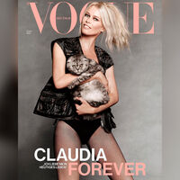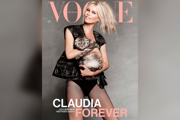 На обложки 53-летняя Клаудия Шиффер предстала в провокационном образе. Звезда подиумов надела черную кожаную жилетку Prada на голое тело, трусы и колготки в сетку. Стилисты сделали супермодели 90-х хвост с прядями у лица, а визажисты — макияж с угольно-черными стрелками и нюдовыми губами. Знаменитость улыбалась и держала в руках своего кота Чипа. Авторами съемки выступили фотографы Луиджи Мурену и Янго Хензи.