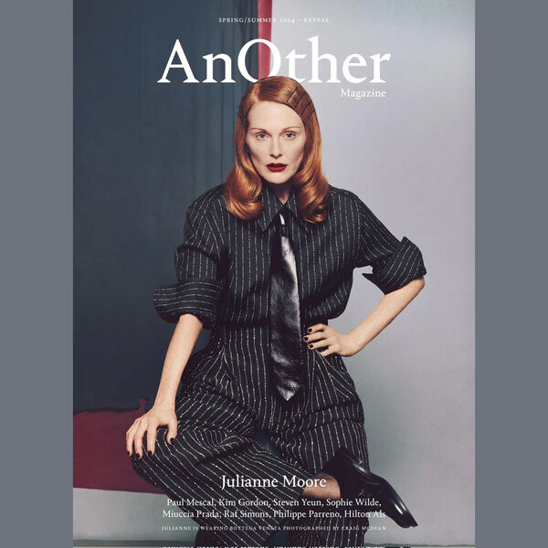 63-летняя Джулианна Мур позировала в черных брюках и рубашке, которые дополнил кожаный галстук и классические ботинки. Волосы ей уложили мягкими волнами и сделали макияж с бордовой помадой и бровями-ниточками. Фотографом выступил Крэйг МакДин.