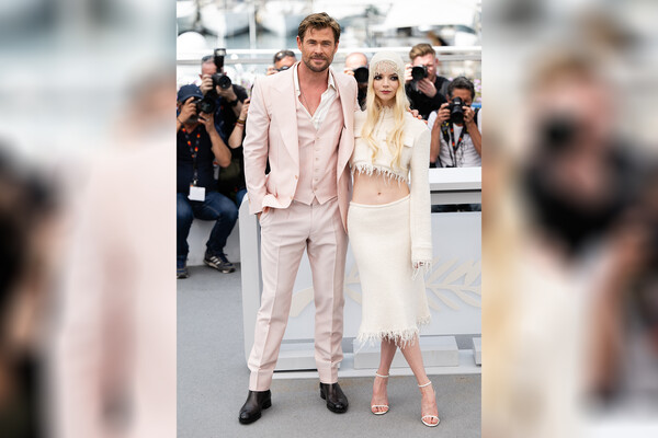 Аня Тейлор-Джой вышла на публику в рваном жакете и юбке, которые дополнила винтажным головным убором и босоножками. Крис Хемсворт появился в розовом костюме-тройке. Перед камерами актеры решили выпить воды и позировали у кулера. Позже в зале Аня Тейлор-Джой и Крис Хемсворт представили фильм «Фуриоса: Хроники Безумного Макса».