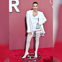 Ранее Виктория Боня в платье из перьев пришла на аукцион в Каннах.