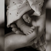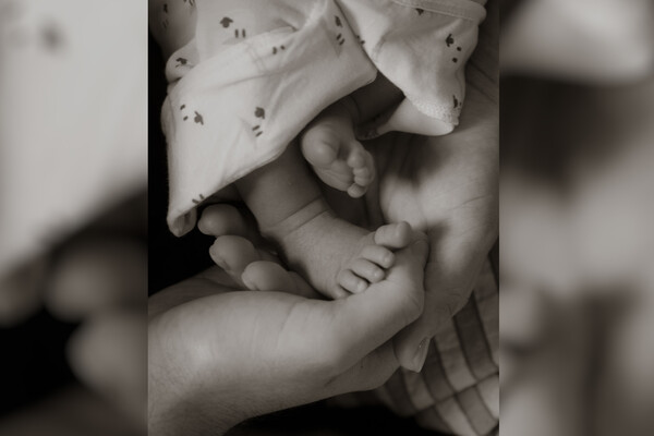 У пары родилась девочка. На снимке она показали пятки ребенка, которые обнимал отец.