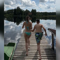 35-летняя Агата Муцениеце была запечатлена с сыном Тимофеем. Актриса надела голубой купальник, а ее наследник — зеленые шорты с принтом. Знаменитость вместе с мальчиком пробежалась по пирсу и прыгнула в воду.
