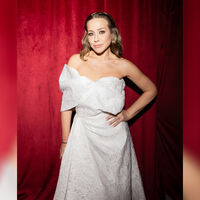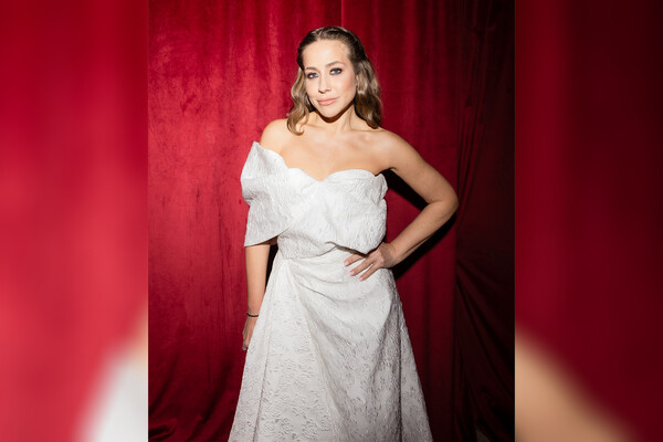 Юлия Барановская предпочла для мероприятия кремовое платье с глубоким декольте и пышным лифом. Образ она дополнила белыми лодочками с острым мысом. Ей также сделали легкий макияж с блеском и укладку: передние локоны убрали заколками назад и сделали мягкие пряди.