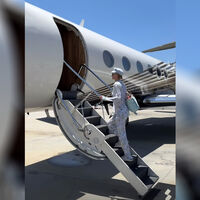 Пэрис Хилтон показала в личном блоге новый транспорт — частный самолет белого цвета с полосатым принтом на хвосте. Хилтон также сделала фото в спортивном костюме на трапе.