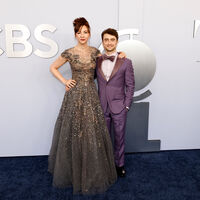 34-летний Дэниел Рэдклифф и 39-летняя Эрин Дарк посетили 77-ю церемонию вручения премии «Тони», которая прошла 16 июня в Нью-Йорке. На красной дорожке актер появился в рубашке, фиолетовом брючном костюме и черных туфлях. Завершением образа стала лиловая бабочка. Эрин Дарк позировала перед фотографами в макси-платье, украшенном пайетками. Визажисты сделали ей макияж с черными стрелками и красной помадой, а стилисты по волосам — укладку.