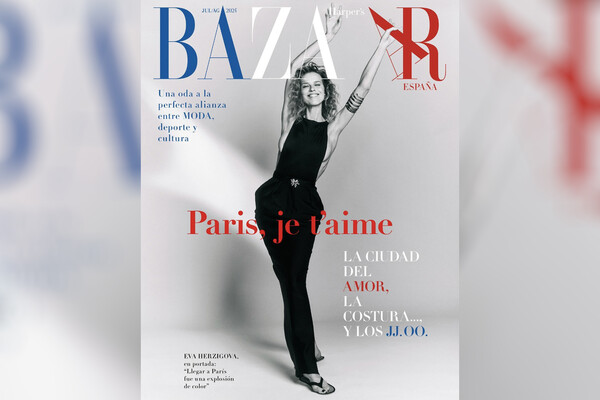 51-летняя манекенщица позировала в черном облегающем платье, оголяющем грудь из-за разрезов по бокам. Образ дополнил браслет в форме спирали и серьги. Волосы ей распустили, сделали лаконичные мелкие локоны и нюдовый макияж. Фотографом выступил Ксави Гордо. Обложка была посвящена грядущим Олимпийским играм в Париже.