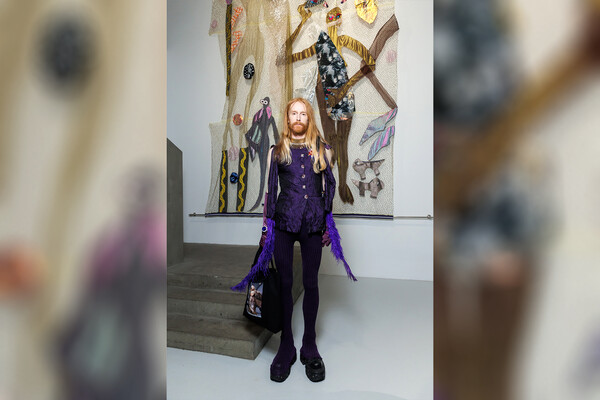 41-летний Поляков позировал в фиолетовых колготках и жакете с перьями. Волосы он распустил и сделал легкие локоны. Образ завершили ботинки на высокой платформе и сумка-шоппер с принтом