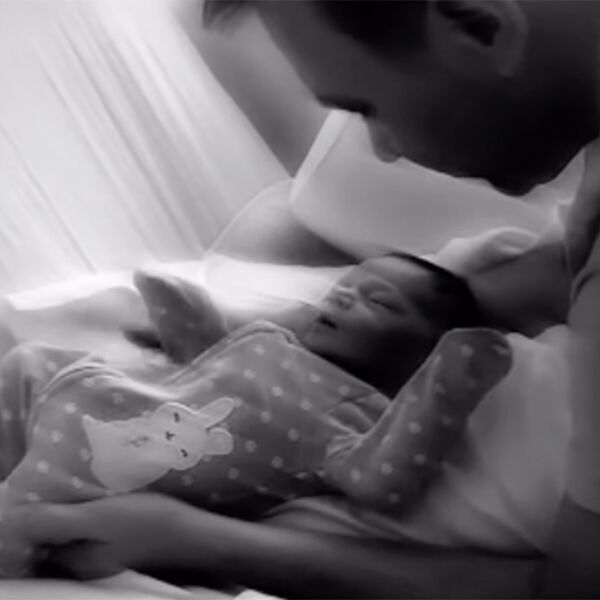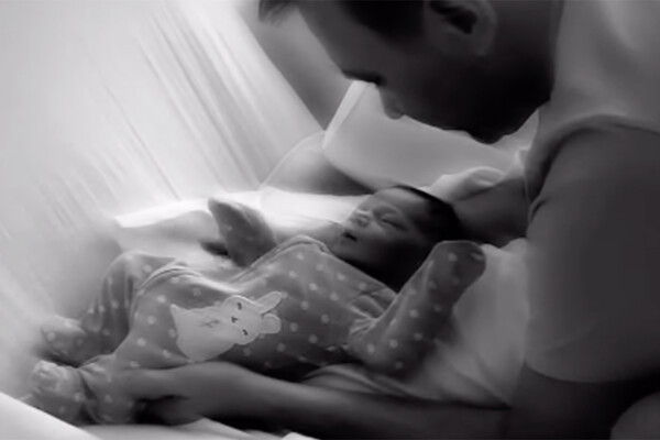 В ролике избранник Анастасии Задорожной, Владимир, обнимал и целовал малыша. Новорожденный ребенок лежал в боди на кровати.