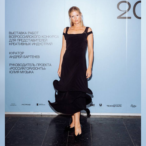12 августа в Западном крыле здания Государственной Третьяковской галереи «Новая Третьяковка» открылась выставка «Россия. Горизонты – 2024», которая стала итогом Всероссийского конкурса для представителей креативных индустрий. Одной из первых мероприятие посетила актриса Софья Эрнст. Для выхода на публику она предпочла черное платье с глубоким декольте, открытыми руками и спиной. На юбке у наряда были воланы. Волосы ей уложили назад и сделали легкий вечерний макияж.