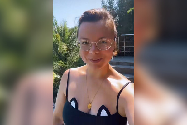 35-летняя Татьяна Брухунова была запечатлена в черном слитном купальнике с мордой кошки и ушами от дизайнера Натальи Якимчик. Жена Евгения Петросяна дополнила его круглыми очками и золотой цепочкой с кулоном. Блогерша позировала с собранными волосами и без косметики.