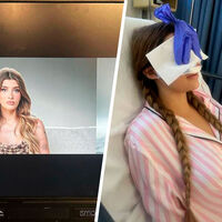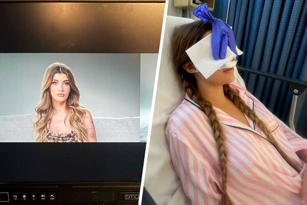 На серии фото модель сначала показала, как выглядела в палате сразу после операции. Ее нос был скрыт за повязками. А после этого уже продемонстрировала утонченный нос на фотосъемке.