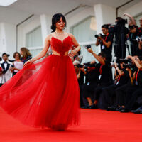 21-летняя Дженна Ортега посетила премьеру фильма «Битлджус 2», которая состоялась 28 августа в рамках «Венецианского кинофестиваля». Для светского мероприятия актриса выбрала красное прозрачное макси-платье с рюшами на тонких бретелях. Знаменитость дополнила образ украшениями: колье, браслетами и кольцами. Визажисты сделали ей макияж с бордовыми тенями и красной помадой, а стилисты — небрежный пучок.