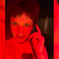 Анна Чиповская сделала короткую рваную стрижку и укладку с объемом у корней. Для фото она также сделала вечерний макияж. Съема прошла при красном освещении.
