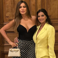 52-летняя София Вергара предпочла для выхода черный корсет, брюки-палаццо с принтом в горошек и жакет, который держала в руках. Образ завершила небольшая сумка из белой кожи от бренда Hermes. Ее стоимости начинается от 1,7 миллиона рублей.