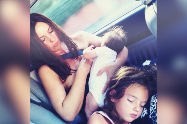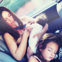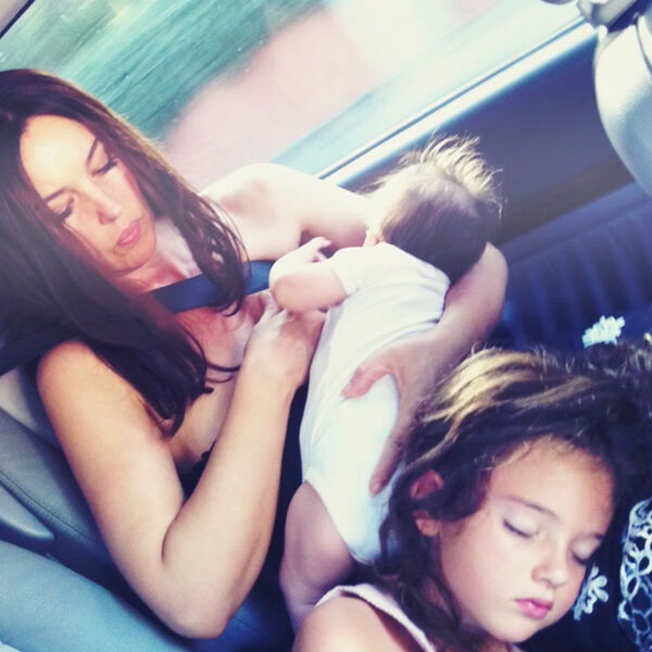 На одном из кадров Моника Беллуччи была запечатлена вместе с дочерьми: Девой и Леони. Актриса сидела вместе с девочками в автомобиле. Знаменитость была одета в черный топ и юбку с белым кружевом. Она распустила волосы и сделала макияж в естественном стиле.