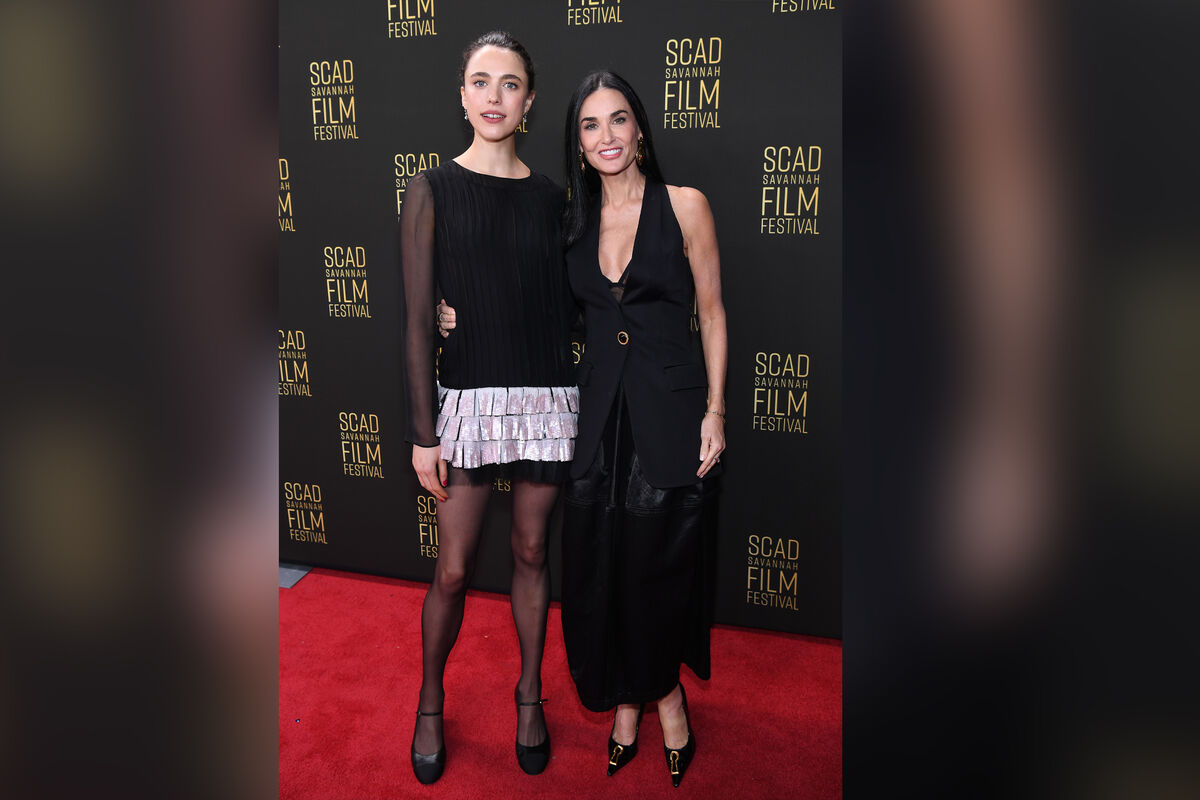 61-летняя Деми Мур посетила кинофестиваль SCAD Savannah 27 октября в Джорджии. Актриса позировала на светском мероприятии в черном наряде, который состоял из жилета с глубоким декольте, черного платья с вырезом и туфель на каблуках. Знаменитость также надела золотые массивные серьги. Визажисты сделали артистке макияж в естественном стиле, а стилисты уложили волосы. На красной дорожке актриса стояла с коллегой Маргарет Куолли.