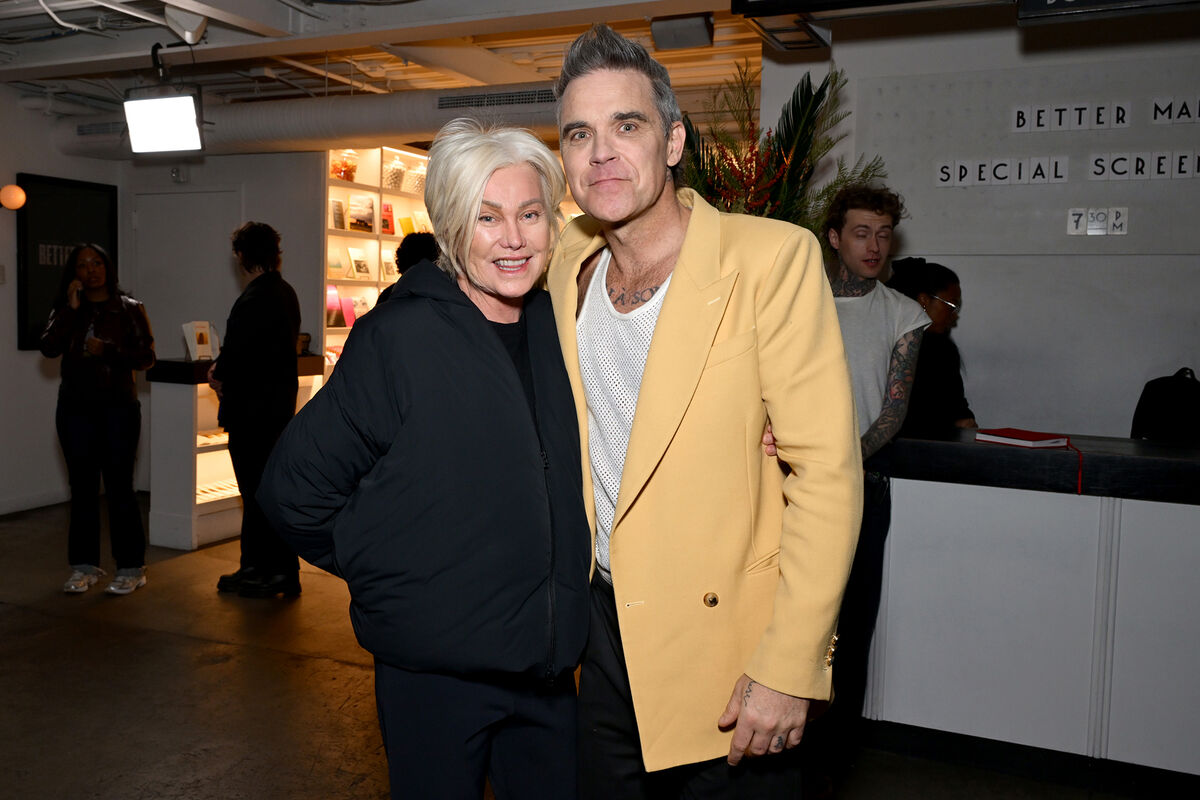 Деборра-Ли Фернесс пришла на премьеру фильма «Лучший человек в Нью-Йорке» вместе с Робби Уильямсом. Актриса позировала без макияжа в черном спортивном бомбере. Волосы она уложила с объемом у корней.