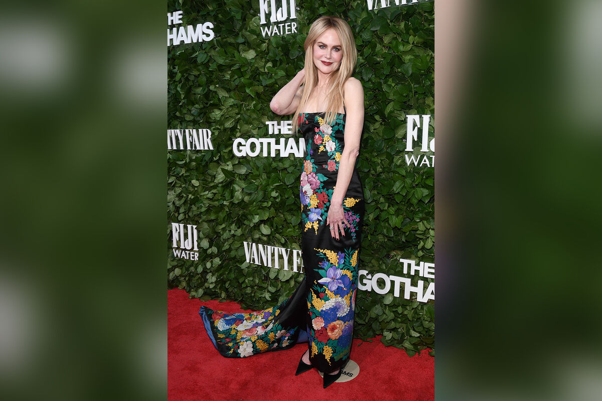 57-летняя Николь Кидман посетила церемонию вручения премии Gotham Awards 2024, которая прошла 2 декабря в Нью-Йорке. Актриса появилась на публике в черном облегающем платье-макси с цветочным принтом и длинным шлейфом. Образ знаменитости дополнили туфли на каблуках в тон, кольца и серьги. Артистка позировала на ковровой дорожке с распущенными волосами. Визажисты сделали ей макияж с черными стрелками, коричневыми тенями и бордовой помадой.