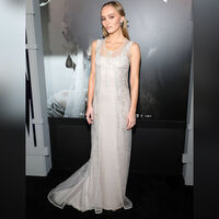 25-летняя актриса позировала перед камерами в серебряном полупрозрачном платье с глубоким декольте. Волосы ей уложили мягкими волнами, заплели косы у лица и сделали легкий вечерний макияж.
