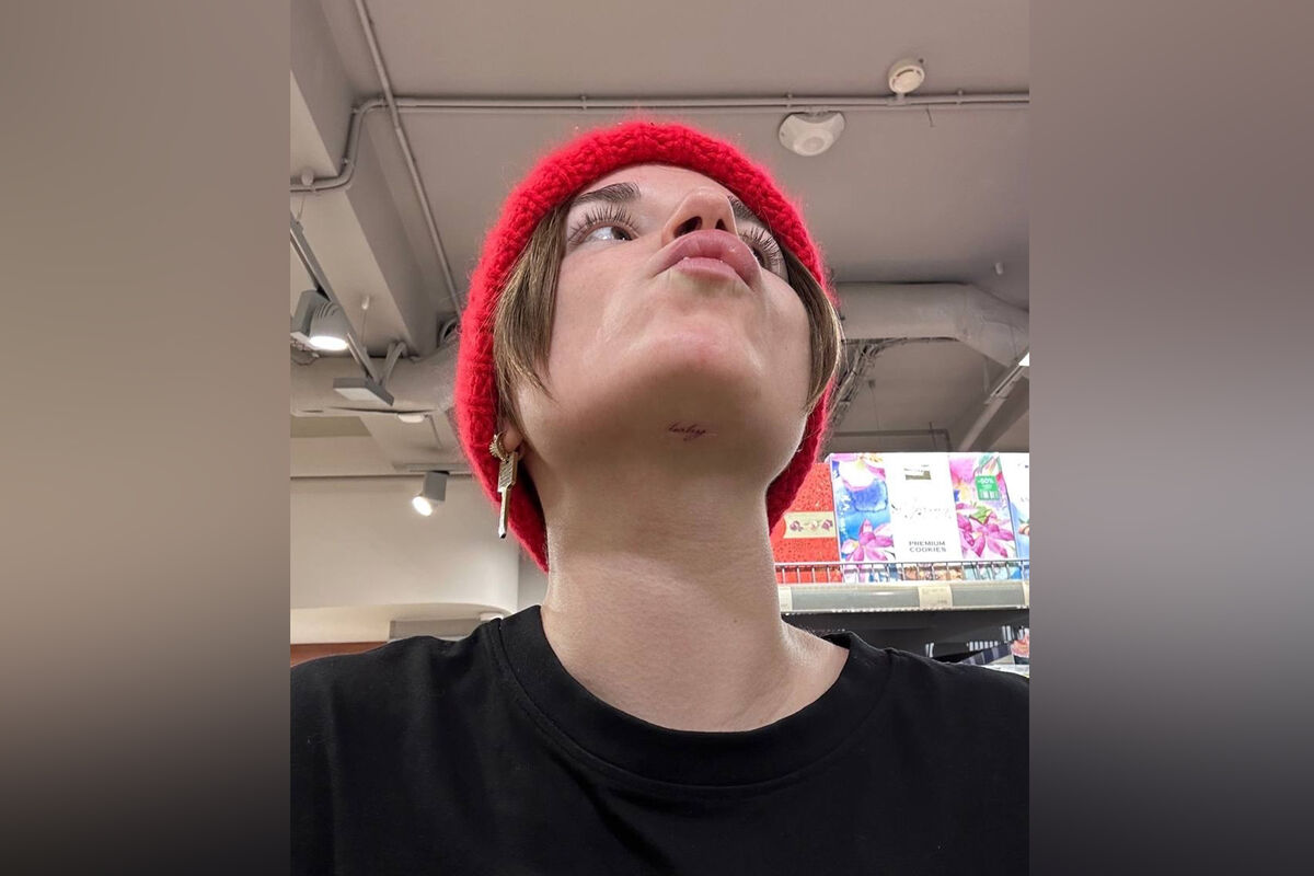 Блогерша Саша Спилберг набила тату на подбородке. Снимками она поделилась в Instagram (владелец компания Meta признана в России экстремистской и запрещена).