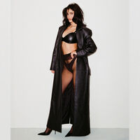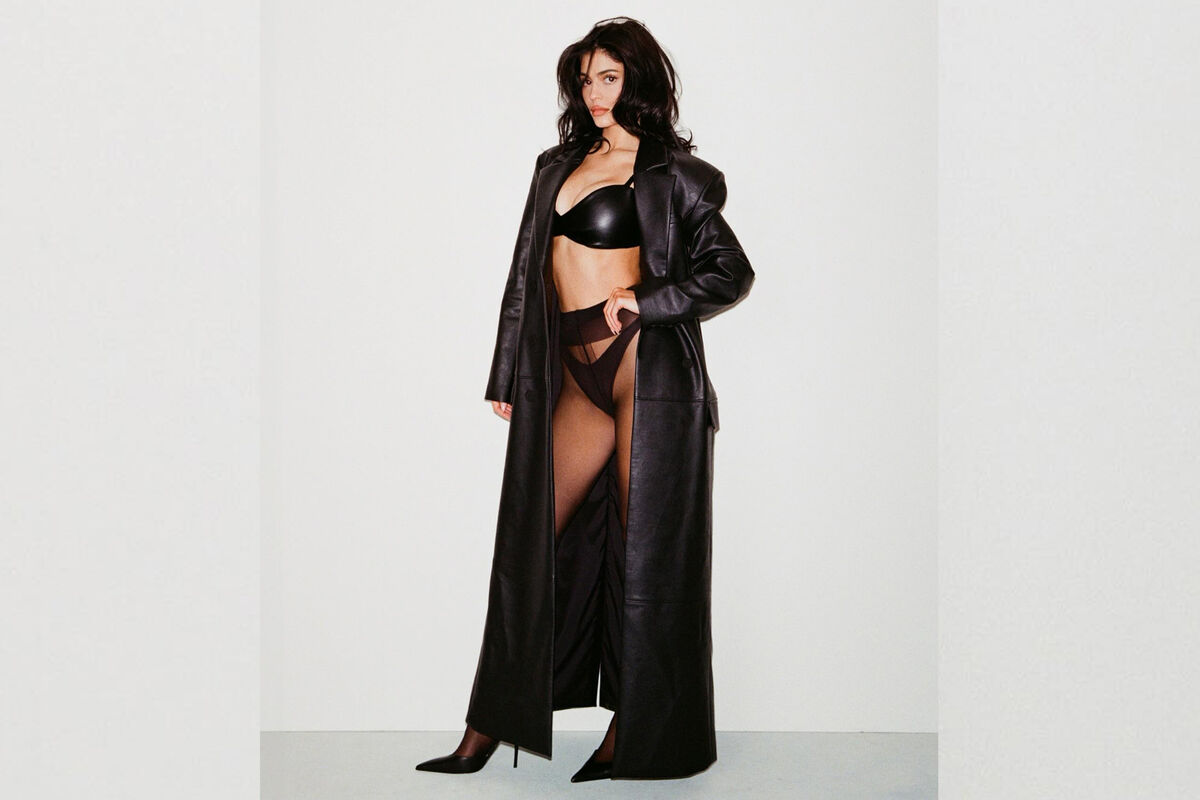Бизнесвумен Кайли Дженнер снялась в белье и кожаном тренче. Снимками она поделилась в Instagram (владелец компания Meta признана в России экстремистской и запрещена).