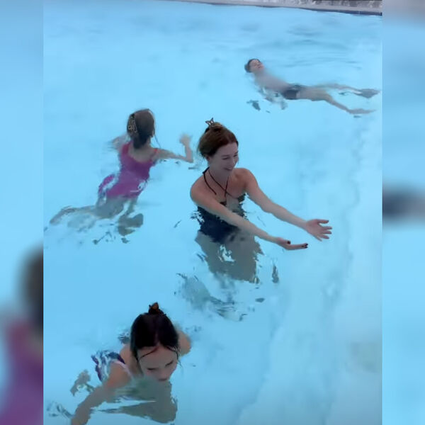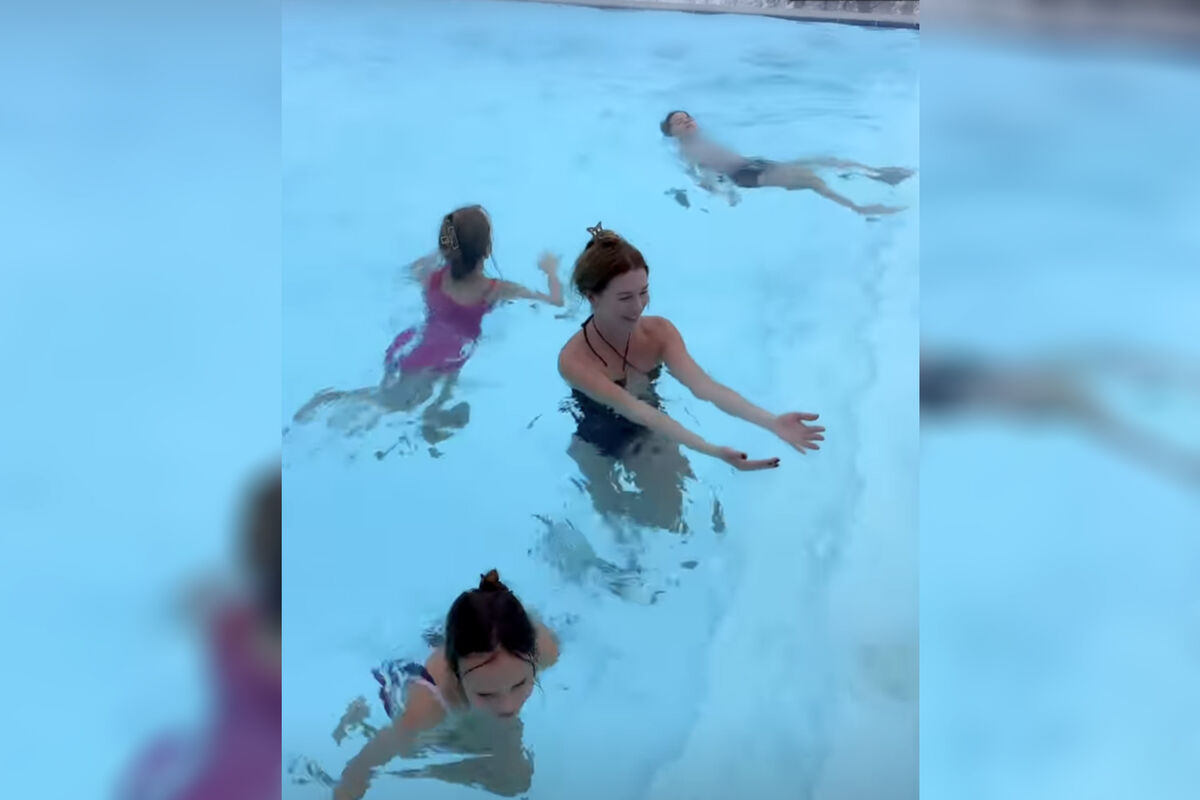 Певица Наталья Подольская в купальнике снялась с сыном и сестрой в бассейне