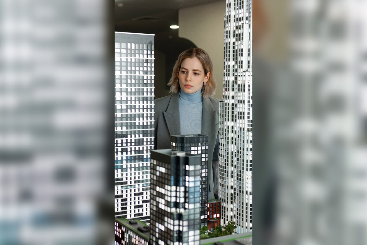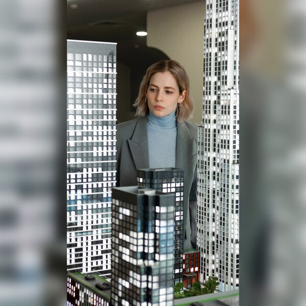 41-летняя Юлия Снигирь с блондинистым каре снялась в офисе продаж недвижимости на съемках сериала «Золотое дно». В кадре она также позировала в серой водолазе с высоким горлом и жакете. Ей также сделали легкий нюдовый макияж.