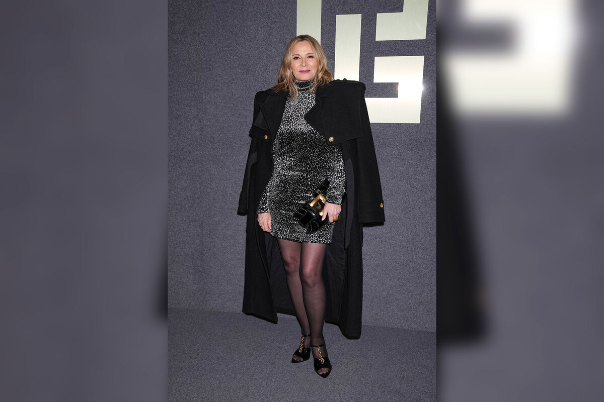 68-летняя Ким Кэтролл стала гостьей показа Balmain, который прошел 5 марта в рамках Недели моды в Париже. Актриса предстала перед камерами в черном облегающем мини-платье с леопардовым принтом и длинном пальто с золотыми пуговицами. Артистка завершила наряд лаковым клатчем с пряжкой, массивным кольцом, колготками и босоножками на каблуках. Знаменитость позировала с распущенными волосами и макияжем с угольно-черными стрелками и розовой помадой.