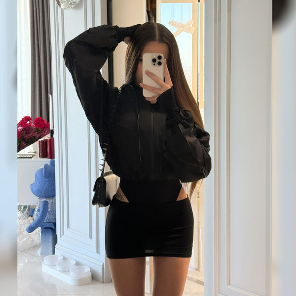 23-летняя Валя Карнавал стояла перед зеркалом в наряде черного цвета. Блогерша позировала в боди, укороченной толстовке и облегающей микроюбке. Певица также дополнила образ сумкой на плечо с шипами. Знаменитость была запечатлена с распущенными волосами.