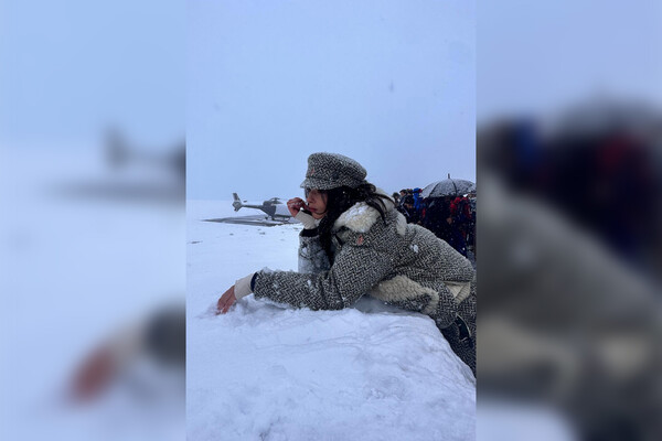 20-летняя модель дала понять, что осталась не в восторге от низких температур и снега. Дева Кассель позировала в горнолыжном костюме на горе.