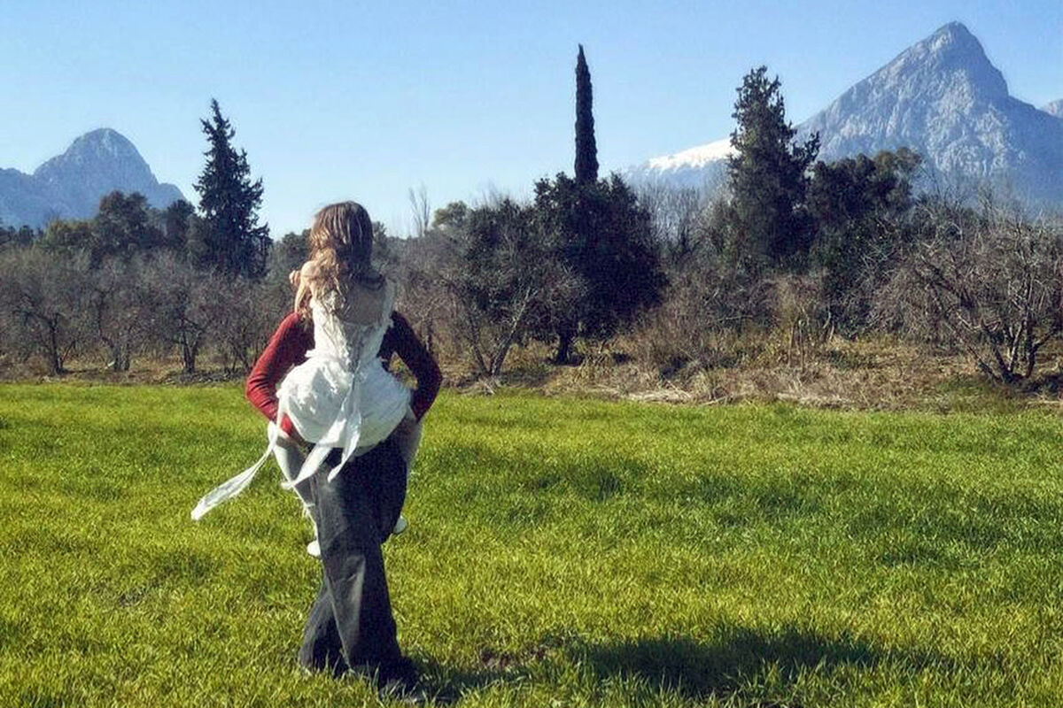 На снимке Анна Пересильд сидела на руках у Вани Дмитриенко и обнимала его. Актриса была одета в белое корсетное платье, колготки в тон и сапоги. Поп-исполнитель был запечатлен в красной водолазке, черных широких джинсах и кроссовках.