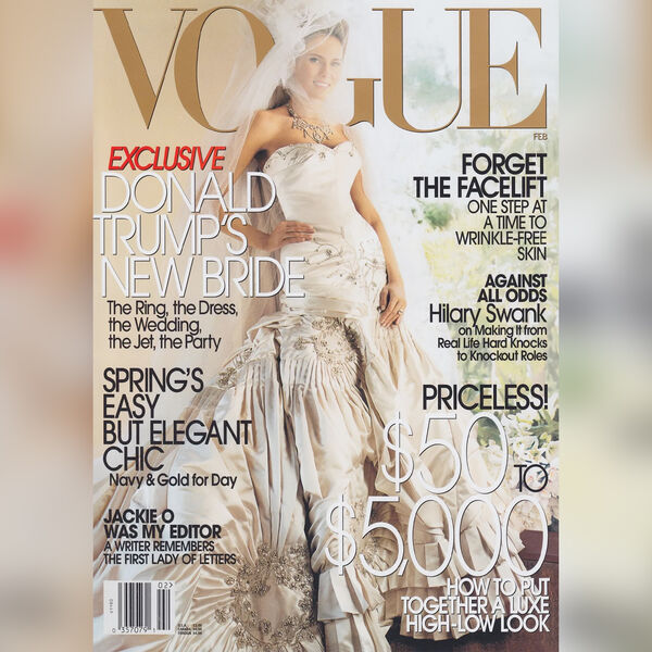 На сайте eBay появилось объявление о продаже свадебного платья Мелании Трамп авторства Джона Гальяно, когда он работал в Доме моды Dior. Продавец утверждает, что приобрела оригинальный наряд за $70 000 для своей свадьбы, прошедшей в 2011 году. В объявлении указано, что в дизайн платья были внесены изменения. Продавец заявила, что добавила вышивку, бретельки и дополнительный слой атласной ткани. Сообщается, что наряд украшен оригинальными кристаллами Swarovski. Стартовая цена платья составляет $45 000.