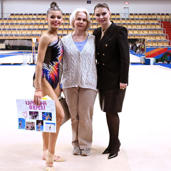 Гимнастка Алина Кабаева в кожаной юбке посетила соревнования в Казани. Фотографии опубликованы в Telegram-канале Академии художественной гимнастики «Небесная грация».