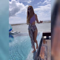 42-летняя Наталья Подольская предстала перед камерой в лавандовом слитном купальнике, брюках с вырезами и солнцезащитных очках. Певица позировала с распущенными волосами и без макияжа. Артистка была запечатлена у бассейна на Мальдивах.