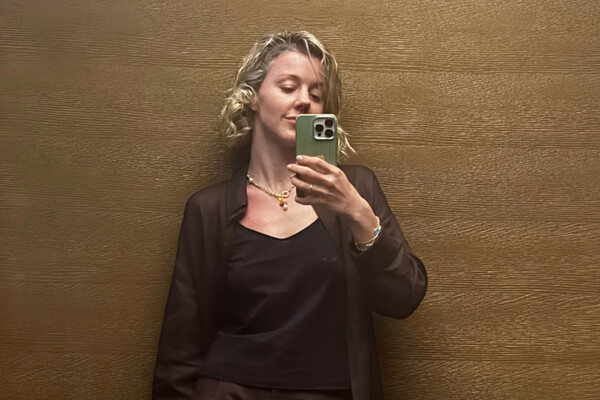 Юлианна Караулова позировала в коричневом трикотажном топе, льняных брюках и рубашке. Волосы она распустила и отказалась от макияжа.
