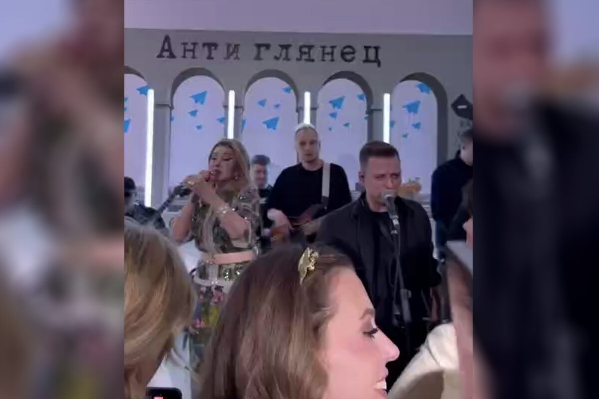 71-летняя Любовь Успенская стала хедлайнером вечеринки Антиглянца. Певица вышла на сцену в платье со стразами с пестрым поясом. Волосы ей уложили крупными локонами и сделали макияж с угольно-черными стрелками.