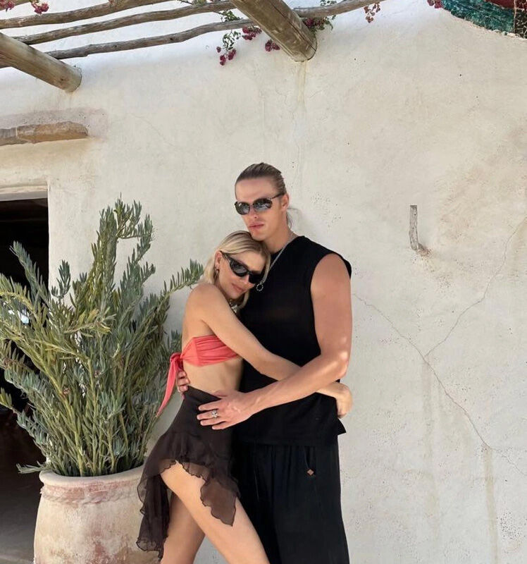 Елена Перминова и Тарас Романов сейчас отдыхают на Ибице. На снимке влюбленные обнимали друг друга. Модель предстала перед камерой в коралловом лифе бикини, черной прозрачной мини-юбке, солнцезащитных очках и коричневых сандалиях. Возлюбленный блогерши стоял в черной майке, трениках и солнцезащитных очках.