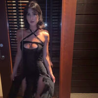 20-летняя Анджелина Цензори позировала в черном шифоновом платье с декольте и разрезами, которое дополнила босоножками на каблуках в тон. Модель предстала перед камерой с распущенными волосами и вечерним макияжем с черными стрелками и розовыми губами.