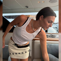 27-летняя Виттория Черетти показала кадры, сделанные во время отдыха на яхте. Модель была запечатлена в белой майке, под которую надела черный бюстгальтер. Манекенщица добавила к образу молочную юбку со швами и ожерелье. Знаменитость засняли с собранными волосами и без косметики.