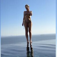37-летняя Софья Эрнст была запечатлена в коричневом бикини с принтом. Знаменитость стояла с собранными волосами и без косметики у бассейна.